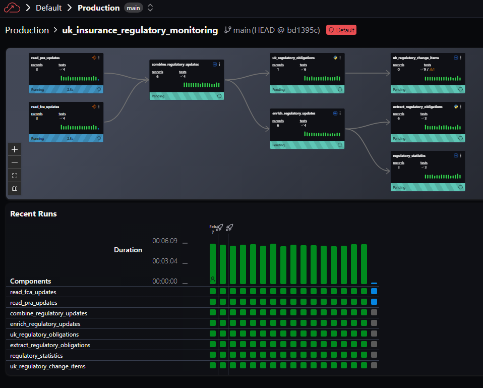 Furthermore, the execution of the pipeline was thoughtful and creative. Agents were deliberately constrained to UK insurance regulation only, preserving FCA and PRA intent without inference. Every output traces back to its source publication, and the entire pipeline writes to Snowflake for reporting and audit trails.