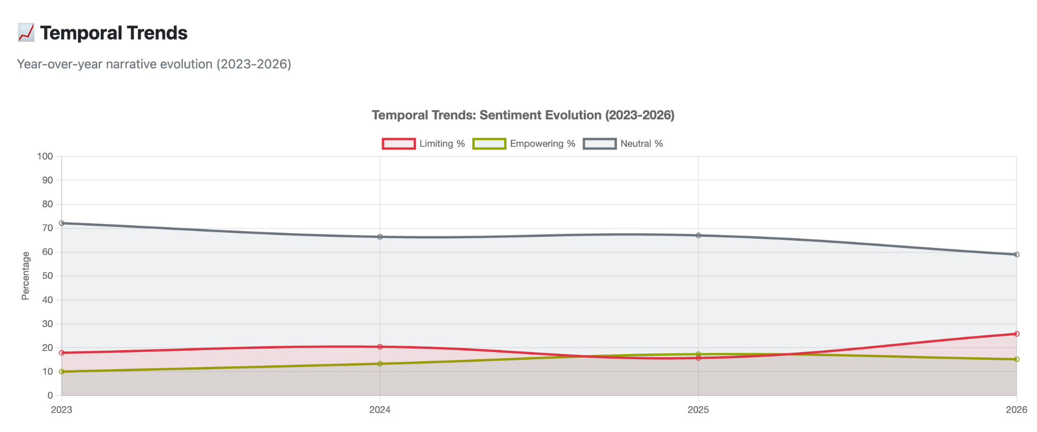 The system proved advocacy works: 2025 showed a +4% increase in empowering coverage and a 2.2% drop in limiting language. Weekly automated reports enable rapid response to narrative shifts.