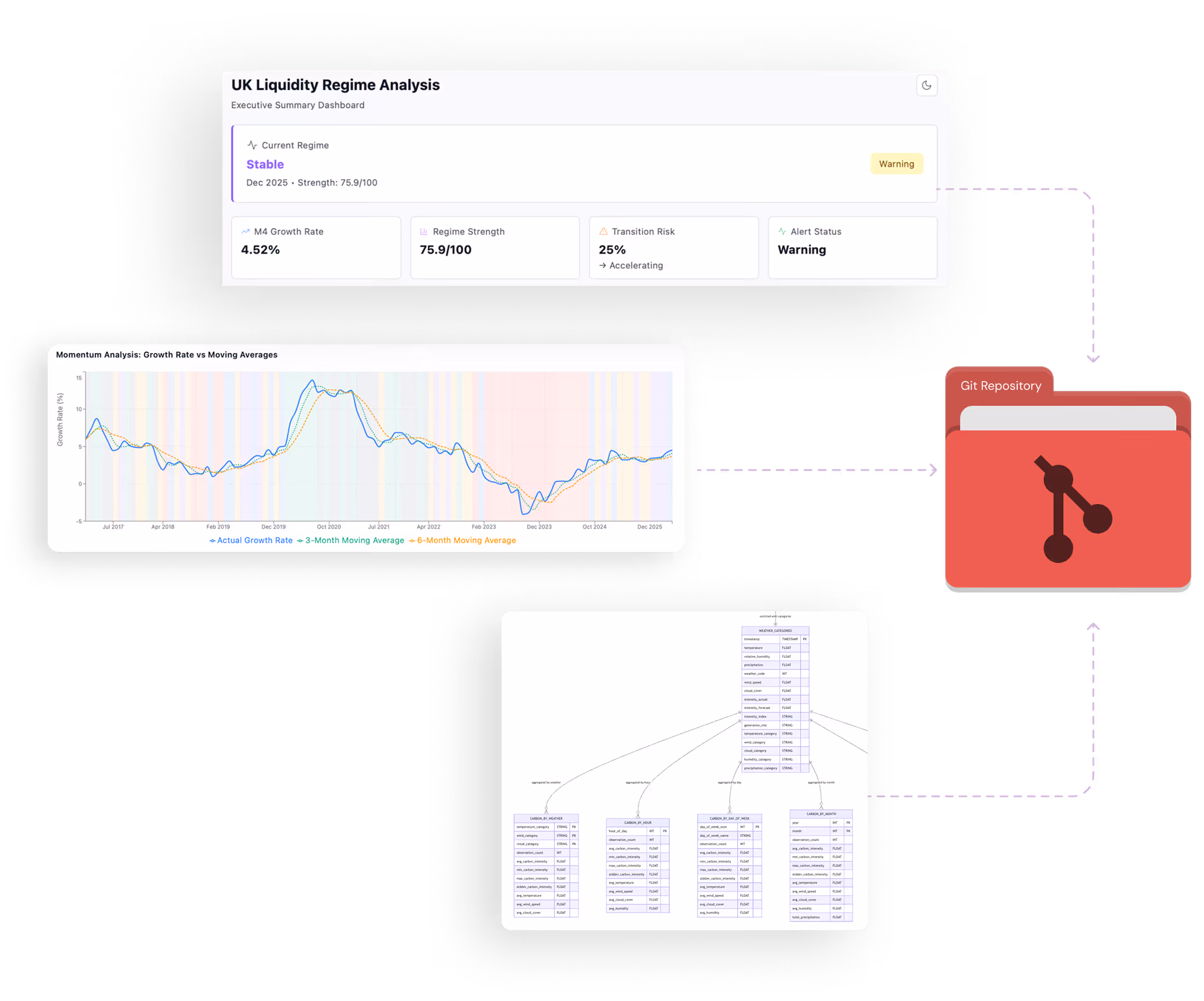 Save visualizations to your git repository and share them with stakeholders. Not extra tools, to export headaches.